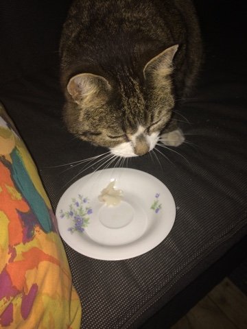 Det är ju inte bara vi som ska ha mat. Även Sudden försöker jag se till att det är annat på menyn till än kattmat. Ofta smakar han gärna vår mat, men riktigt fest för honom när jag har någon snäll människa som erbjuder gädda.