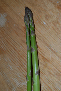 När jag skulle till och fara hem över igen sa mamma att det fanns färdig sparris om jag ville. Så därför fick jag med mig två klara stänglar - mer är på gång - och de var riktigt fräscha.
